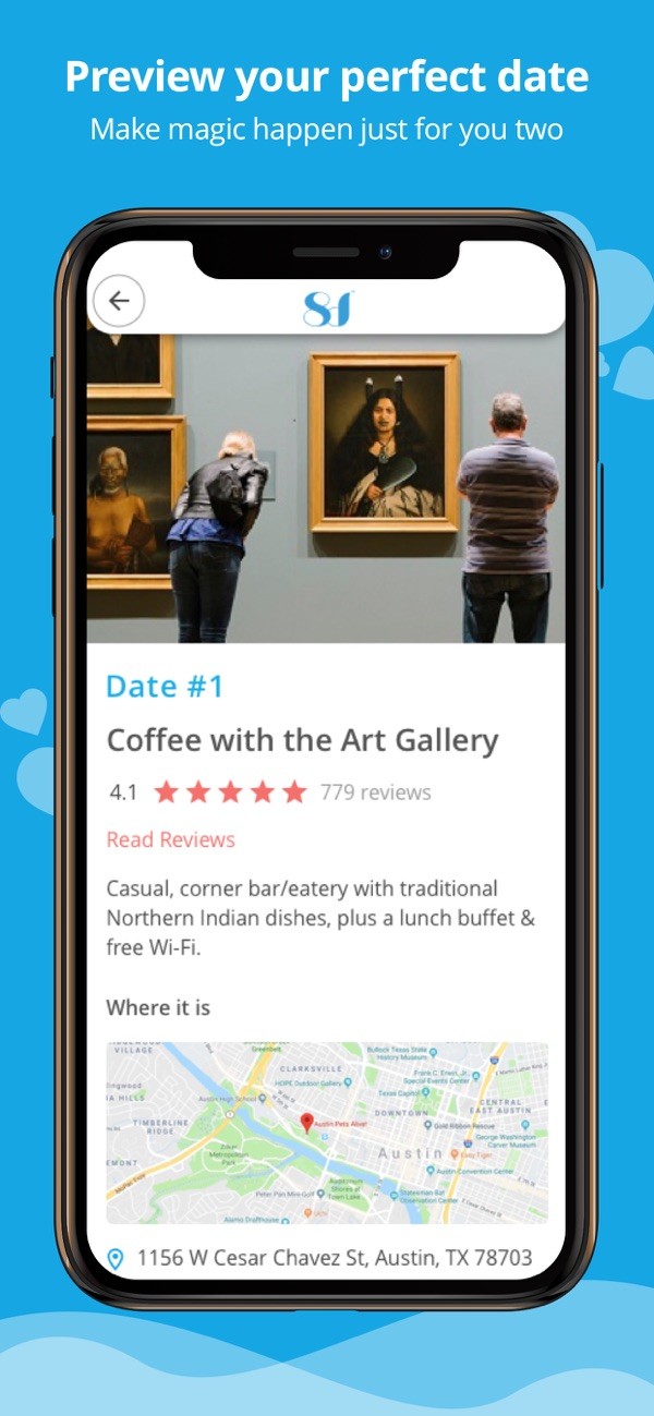 We believe current dating apps aren’t optimized to help you fall in love, so they leave you alone after the match. 8dates takes over after the match and recommends great date ideas, 8 of them based on your interest. We know it takes more than a swipe to find love. If you can make it to 8, you’ve probably found someone special.