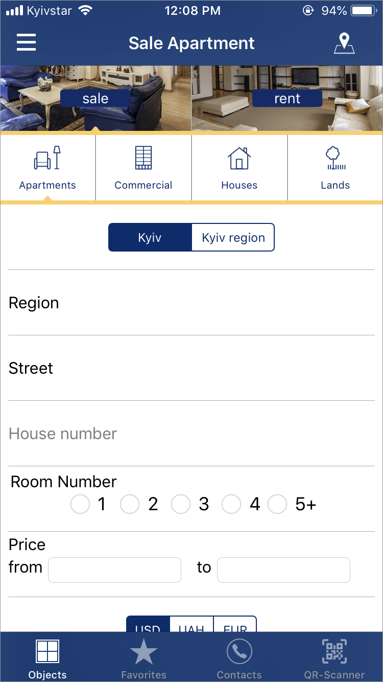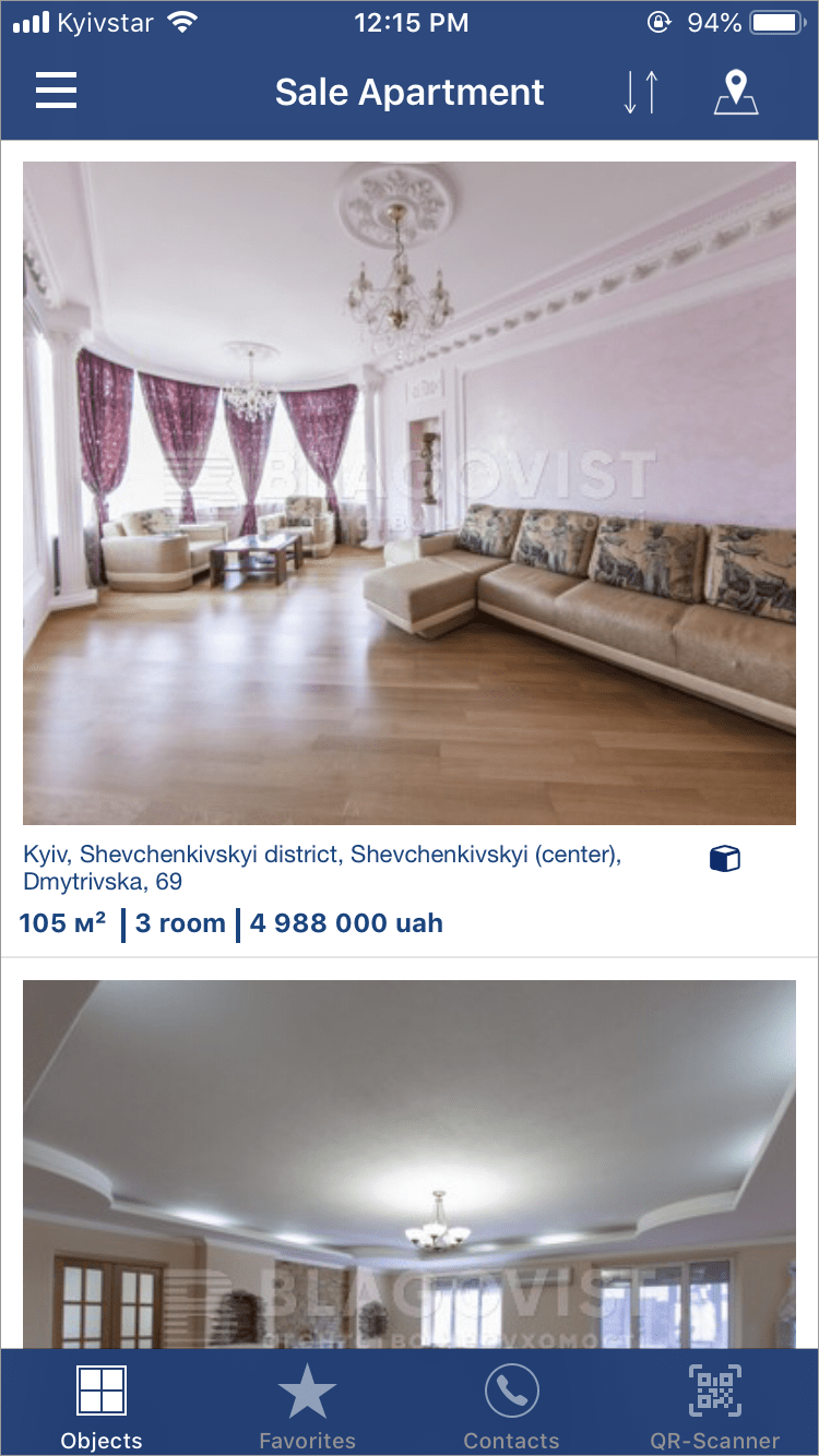 Official iOS application of Blagovist, Real Estate Agency, was created based on daily database of real estate objects offered in the City of Kyiv and Kyiv oblast.