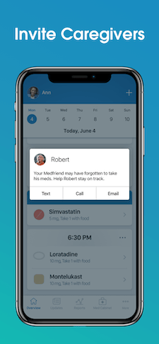 Medifriend is the Medisafe name for a “buddy.” When you invite someone to be a Medifriend, they will receive an alert if you fail to take one of your scheduled medication doses. The alert to your Medifriend goes out 30 minutes after a missed dose and does not give the name of the medication, only that you missed a dose. Your Medifriend can then contact you and make sure you’re doing ok.