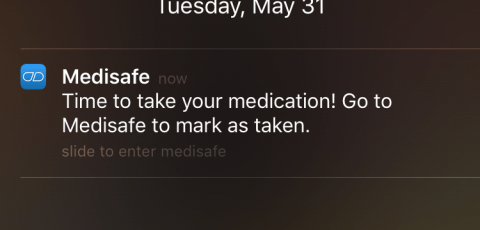 Now that Medisafe is all set up for you, what happens? Well, you just wait for the next time a medication reminder is due. When the time is right, your iPhone will sound an alarm and you’ll see a reminder on your lock screen, similar to the image on the right You’ll notice that the actual medication is not mentioned, this is to protect your privacy. You may not want anyone who sees the alert to know what medication you need to take.