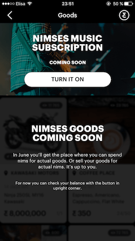 The technical algorithm of the platform works in such a way that the users lived time is expressed in monetary terms. Inside the system, users can accumulate NIMs to use with Nimses Goods.