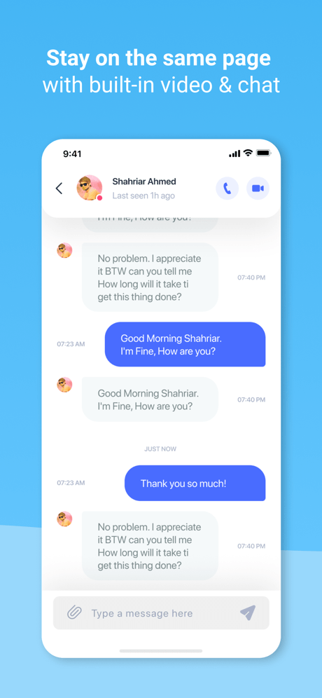 This means that you can review progress on tasks that you’re waiting on without mailing anyone and without video calling anyone. They’ll love you for that.