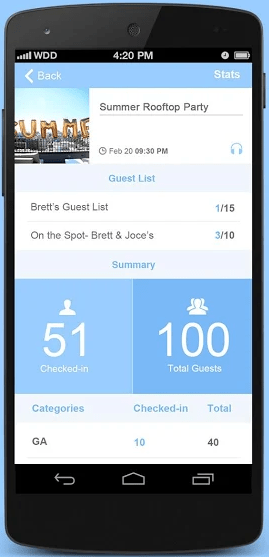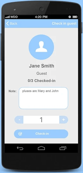 В день / ніч вашого заходу система дійсно вступає в свої права. Додаток Guestnow дозволяє легко відзначати гостей, коли вони прибувають. Це можна зробити тільки на одному пристрої, з WiFi або без нього.