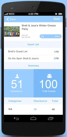 Guestnow – єдиний відомий нам додаток для реєстрації, який може інтегрувати ваші події в Facebook з системою управління RSVP. Просто підключіть свій захід в Facebook через панель управління гостями, і ви зможете відслідковувати відповіді на запрошення та реєстрацію гостей після прибуття на ваш захід.