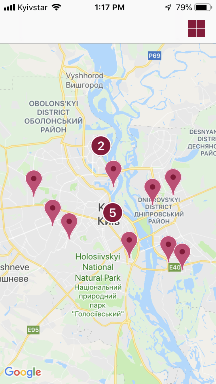 Об’єкти розміщуються і групуються на карті, що дозволяє користувачам легко знаходити об’єкти в певній галузі.