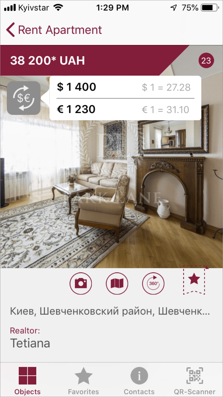Детальна інформація про об’єкт з перетворенням цін в найпопулярніші валюти, зображення, карта і віртуальний 3D-тур.