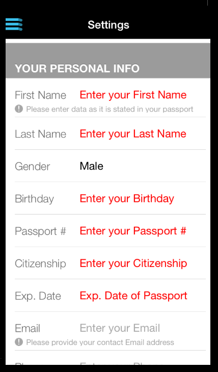 У додатку ви повинні ввести свою особисту інформацію, щоб мати можливість придбати квиток. В налаштуваннях також можна вибрати відображення вартості в будь-якій валюті.